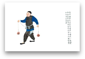 성인 중에는 ‘화류성(火流星)’ 잡기를 실연하면서 구걸하는 거지도 있다. 『북경민간생활채도』 제90 「사화류성도(耍火流星圖)」의 제사는 이렇다.