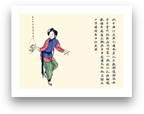 그 어린아이는 물이 가득 든 그릇 하나를 손에 들고 나왔다. 그릇을 줄로 묶어 미간에 연결시킨 후 손으로 공중에서 흔들다가 손을 놓자 머리 위에서 흔들거리며 빠른 속도로 빙빙 회전하였다. 그릇 속에 담긴 물은 쏟아지지 않은 것은 물론이다. 알려진 바로는 그 소년은 왕 씨로 부모 모두 세상을 떠나 홀론 유랑하며 구걸했다고 한다.