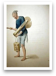 청 왕조 최후 1년, 1911년에 제남(濟南) 밖에서 어린 아이가 이런 방식으로 길가는 사람들을 불러 모아 구걸하고 있었다.