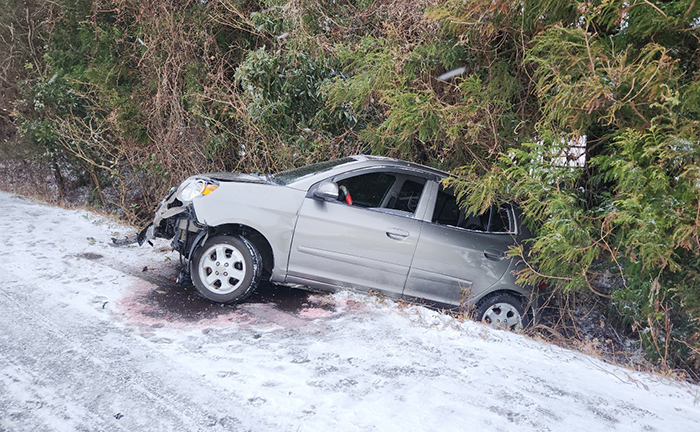 22일 제주도 소방안전본부와 경찰 등에 따르면 이날 오전 10시 46분께 제주시 조천읍 한 도로에서 눈길을 달리던 승용차가 미끄러져 도랑에 빠졌다.