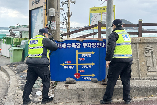 앞서 오전 10시 32분께 제주시 노형동에서도 차량이 눈길에 미끄러져 소방당국이 안전조치에 나섰다. 또 오전 9시 30분께 제주시 한림읍 협재리 협재해수욕장 입구의 철재 교통안내표지판 연결고리가 떨어져 나가 경찰이 안전조치를 취했다.