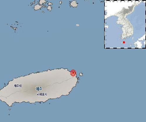 제주 동부지역에서 지난 19일 오후 지진이 발생했다.