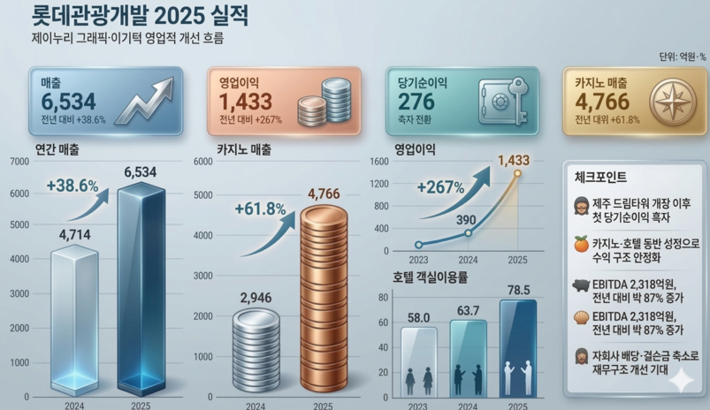 롯데관광개발 관계자는 “당기순이익 흑자 전환을 통해 카지노와 리조트 사업의 안정적인 이익 창출 능력이 확인됐다”며 “정부의 기업 밸류업 정책에도 적극 부응해 주주가치 제고에 힘쓰겠다”고 밝혔다. [제이누리=이기택 기자]