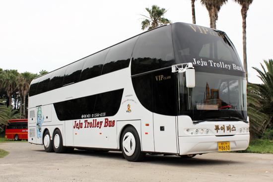 제주에서 버스투어에 대한 경쟁력 강화를 위해 투어버스여행(주)가 2층 버스를 도입해 지난 6월 27일부터 시범운행을 시작했다고 9일 밝혔다.