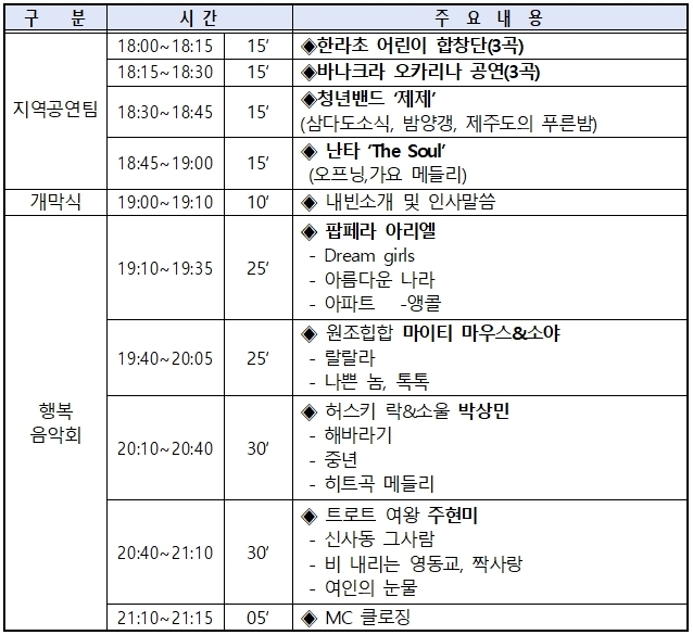 - 지역공연팀(한라초 어린이 합창단, 청년밴드 ‘제제’등)