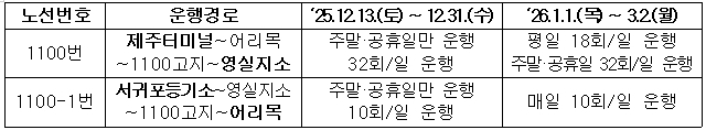 ㅇ 운행기간 : `25. 12. 13.(토) ~ `26. 3. 2.(월)