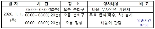 ㅇ 일시: 2026. 1. 1.(목) 05:00~08:00
