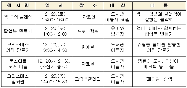 제목 : 서귀포기적의도서관 연말 행사 알림