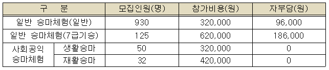 체험기간 : 2026. 412프로그램 일정은 승마장 별로 다름