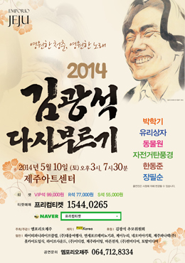 '2014 김광석 다시부르기' 콘서트. 5월 10일 오후 3시, 7시 30분 2회 공연으로 제주아트센터가 무대다.