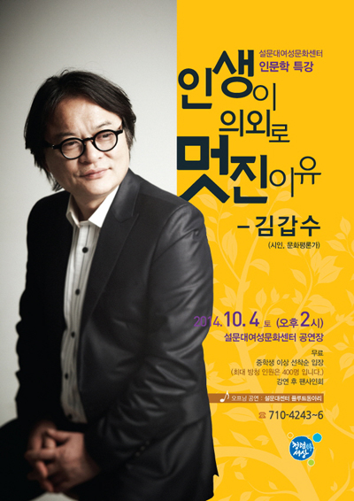 이번 인문학 특강은 칼럼니스트로 왕성히 활동하고 있는 김갑수 문화평론가가 '인생이 의외로 멋진 이유'라는 주제로 클래식 음악과 창의성이 어떻게 상호작용 하는지에 대해 강연할 예정이다.