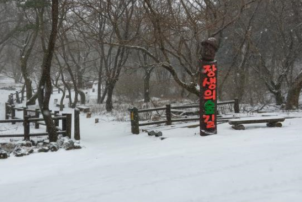 장생의숲길은 11.1㎞, 숫모르편백숲길은 8㎞다. 지형이 비교적 평탄해 눈길 트레킹을 즐기는 관광객들의 발길이 끊임없이 이어지고 있다.