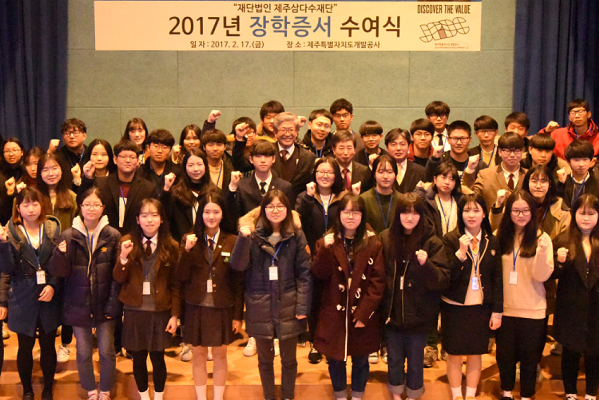 삼다수재단은 17일 제주개발공사 정도관에서 고교·대학생 103명에게 장학금 2억5350만원을 전달했다.
