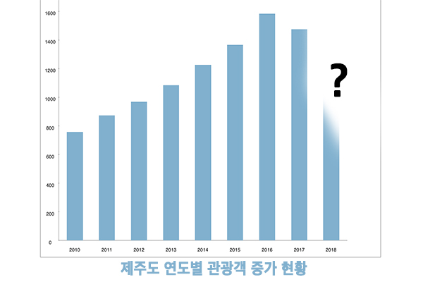 사드보복은 제주 관광 시장에 큰 위기감을 조성하는 듯 했다. 사드보복 조치가 이뤄지면서 외국인 관광객 수가 지난해 9월 기준 전년대비 60%이상 줄어든 것이다. 특히 중국인 관광객은 71%가 급감했다.
