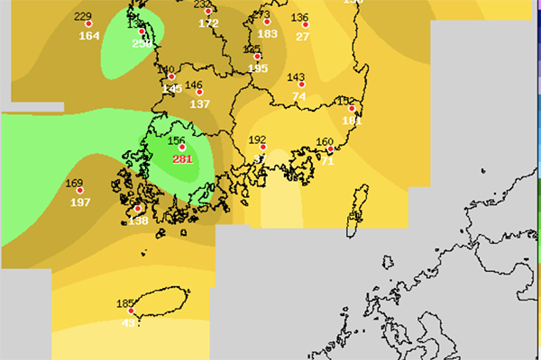한편, 이날은 중국 북동지방에 자리잡은 고기압의 영향으로 대체로 맑을 것으로 전망된다.