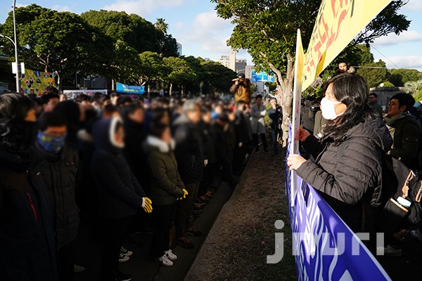 고은영 제주녹색당 공동집행위원장은 이날 집회에서 “천막 강제철거를 위해 수많은 공무원들이 나왔다”며 “하지만 시청에서는 동절기 강체철거를 금지하고 있다. 이러한 강제철거는 서울과 청와대, 국회, 광화문 등 전국 어디에서도 볼 수 없다”고 말했다.