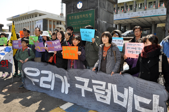 환경운동연합 나혜란(25·여)씨는 “구럼비 바위에 구멍을 뚫고 화약을 터트리던 날 환경연합 마당 한귀퉁이에서 많이 울었다”며 “폭약으로 부셔진 구럼비바위와 평화를 원하는 강정주민들의 외침에 너무나 무력했고, 어쩔 줄 몰랐다”고 심정을 밝혔다.