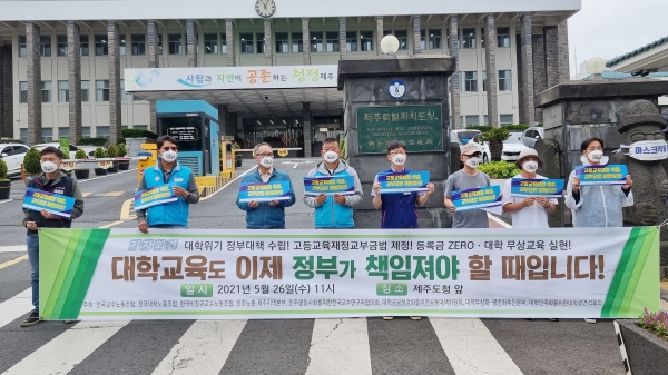 전국교수노동조합 등 7개 단체가 제주지역 대학의 위기에 대한 대책뿐 아니라 고등교육 정책의 대전환을 위한 중장기 대책을 마련해야 한다고 촉구했다.