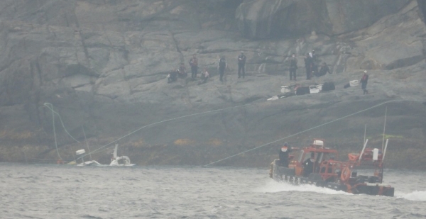 해경은 "좌초된 선수와 선미에 있는 홋줄로 낚시어선 A호를 화도 갯바위에 연결해 놨다. 하지만 현재 선수 일부분과 안테나 일부부만 수면 위에서 보이는 상태로 침몰했다"고 설명했다.
