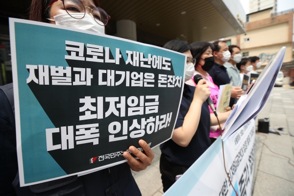 이 단체는 “최저임금이 크게 인상됐던 2018년, 저임금노동자 비율이 21.5%에서 15.7%로 줄어드는 등 임금 불평등이 개선된 바 있다”면서 “최근 미국, 독일 등 주요국들이 최저임금 대폭 인상을 추진하는 것도 코로나19로 악화된 소득 양극화를 극복하기 위한 주요한 역할을 할 수 있기 때문”이라고 설명했다.