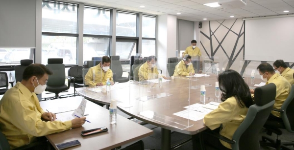 JDC는 26일 제주공항 면세사업본부 사무실에서 문대림 이사장 주재로 제주공항 면세점 코로나19 대응 긴급 종합대책회의를 열었다.