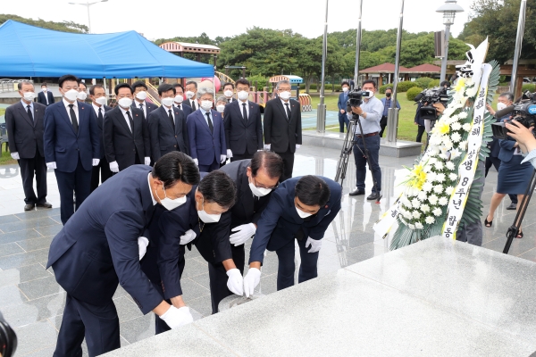 참배 과정에선 현장 출입자 수기명부 작성 및 발열 체크 등 코로나19 방역수칙이 준수됐다.