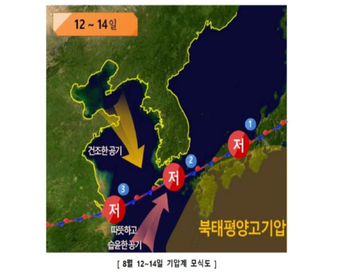 기상청은 “이 정체전선 상에서 저기압이 강하게 발달하는 13일 새벽과 14일 오후엔 남북으로 폭이 좁고, 동서로 길게 발달한 비구름대가 통과하면서 짧은 시간 안에 매우 강한 비가 집중되겠다”고 예보했다.