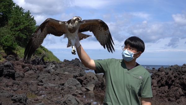 이 물수리는 구조센터가 치료와 영양공급 등 밀착 관리한 결과, 빠르게 호전된 것으로 알려졌다. 이후 센터 내 훈련장에서 비행테스트를 마치고, 지난 28일 제주시 도두동 해안에 방사됐다.