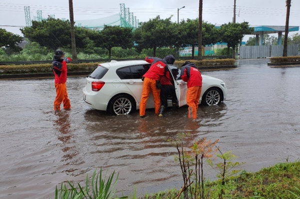 이 밖에도 태풍센터 117㎜, 제주 가시리 113㎜, 서귀포 102.3㎜, 산천단 102㎜, 성산 55.9㎜, 제주 37.6㎜, 고산 24.4㎜ 등의 강수량이 기록됐다.