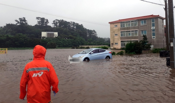 이밖에 제주시 다호마을 입구 인근 마을길과 노형교차로, 해태동산 주변이 물바다가 되는 등 이날 0시부터 오전 6시까지 배수 지원 요청만 16건이 접수됐다.