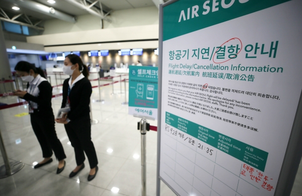 제주국제공항에도 강한 바람과 많은 비가 내리면서 항공편 운항에 차질이 빚어졌다. 제주공항에는 현재 태풍특보 및 급변풍특보가 발효된 상태다.