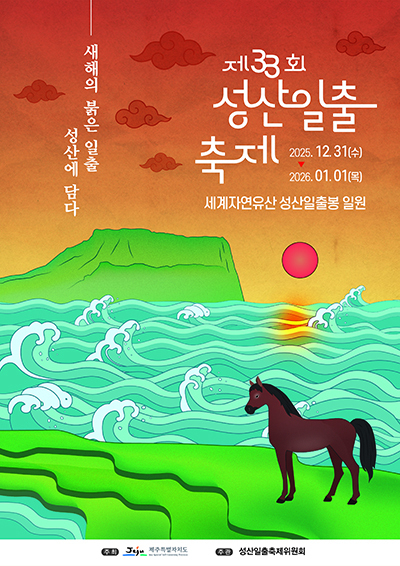 성산일출축제위원회는 오는 31일과 내년 1월 1일 서귀포시 성산읍 성산일출봉 일대에서 ‘새해의 붉은 일출, 성산에 담다’라는 주제로 '제33회 성산일출축제'를 연다고 8일 밝혔다.