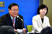 ▲ 구성지 의장과 이선화 위원장이 14일 도의회 도민의 방에서 기자회견을 가졌다. 내년 예산안 편성과 관련, 제주도의회와 제주도청 간 팽팽한 기싸움이 이어지는 가운데 구성지 제주도의회 의장이 말문을 열었다. 구성지 의장과 이선화 의회 운영위원장은 14일 제주도의회 도민의 방에서 기자회견을 열고 "도지사 중심의 예산편성 관행을 개혁해야 한다"며 "도민의 대의기관인 도의회 의원들이 수렴한 지역주민들의 요구사항을 미리 반영할 수 있도록 하는 시스템을 만들어 예산의 협치시대를 열어야 한다"고 강조했다. 구 의장과 이 위원장은 이 자리에서 ▲예산편성지침 제정 이전 의회와 사전협의 ▲탑-다운제(예산총액배분자율편성제도 : 예산기획부처가 미리 예산 총액 한도를 결정, 한도 내에서 각 부처가 자율적으로 예산편성) 배분에 따라 일정규모 범위 안에서는 의회에서 민생현장 소리 현실화 ▲중기지방재정계획 수립 이전에 의회와 사전협의 ▲예산결산특별위를 준(準) 상임위원회로 운영키 위해 관련법 개정을 전국 지자체 의회와 중장기적으로 검토 ▲예산문제는 예산편성 이전에 정책협의회와 거칠 수 있도록 실용적으로 제도 운영 등을 주장했다. 현재 예산은 집행부