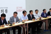 ▲ 새도정준비 2위원회가 23일 새도정사무실에서 언론브리핑을 열고있다 원희룡 제주도지사 당선인의 새도정준비위원회가 감귤정책을 내놨다. 6.4선거 상대방인 신구범 새정치연합 후보의 정책을 수용했다. '정책탕평'을 선언했다. 원희룡 제주지사 당선인의 감귤 명품산업 육성 공약과 신구범 준비위원장이 6.4선거 후보 시절 내세운 산지공판장 설치 공약의 취지를 반영한 '제주감귤(농축수산물) 거래소' 설치가 새도정의 정책으로 제시됐다. 원희룡 제주도지사 당선인 새도정 준비위원회는 23일 오전 11시 준비위 사무실에서 도정준비2위원회 언론브리핑을 했다. 도정준비 제2위원회는 친환경1차산업분과, 미래산업분과, 민생·일자리분과 등 3개 분과가 참여하는 위원회다. 친환경1차산업 분과는 산지주도의 가격 결정과 거래비용 절감을 위해 '제주 감귤(농축수산물) 거래소' 설치를 제시했다. 고유봉 도정준비2위원회 위원장은 "제주감귤 거래소 설치는 원희룡 당선인의 감귤 명품산업 육성 공약과 신구범 위원장의 산지공판장 설치 공약의 취지를 반영한 ‘정책탕평’의 대표적인 사례"라며 "이 정책은 소비지 주도의 불공정한 거래방식을 개혁하