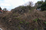 ■ 묵은 연디(연대) ▲ 수산리와 묵은연디로 가는 길 고성 북쪽 성뒷길을 지나 수산방향으로 향한다. 양옆으로 나즈막한 돌담이 쌓인 좁은 길이다. 바닥만 콘크리트로 포장되어 있지 옛 모습 그대로를 간직하고 있다. 여간 호사가 아니다. 걷는자 만의 특권이다. 들려오는 휘파람 새소리는 보너스다. ▲ 묵은 연디 묵은 연디(연대)도 주인과 운명을 같이 했다. 고성이 폐성된 이후 이 연대도 버려져 600년의 세월을 견뎌 왔다. 고성이 버려지기 전 지미봉수와 대수산봉수(큰물뫼오름봉수)와 연계하여 신호를 받아 옛 정의현감에게 알리던 연대라고 한다. 그 긴 세월동안 아직도 남아 있다는게 신기할 따름이고 보존이 시급해 보인다. 제주도내 훼손되어 사라진 봉수나 연대도 원형과 상관없이 버젓이 새로 쌓는 판국에 600년된 연대가 돌봐주는 이 없이 스스로 아직도 그 모습을 간직하고 있다면 그 자체로 충분히 문화재로서 가치가 있다고 본다. ▲ 개조심 오조리에선 '외상사절'이라는 잊혀진 문구가 보이더니 수산리 어귀에선 '개조심'문구가 반